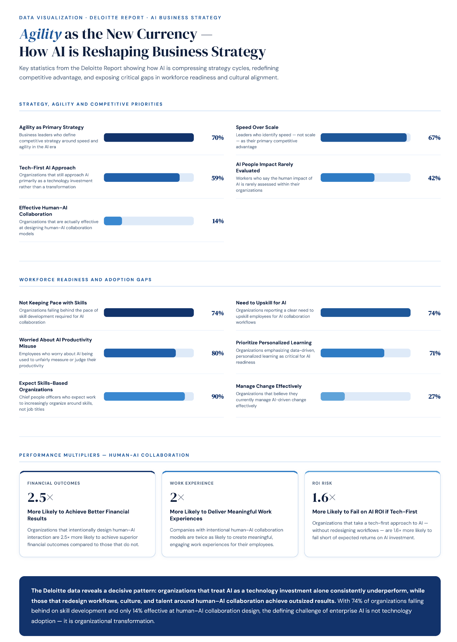 The latest Deloitte Report signals a structural shift in how organizations compete: 70% of business leaders now define their competitive strategy around speed and agility as artificial intelligence accelerates transformation across industries .