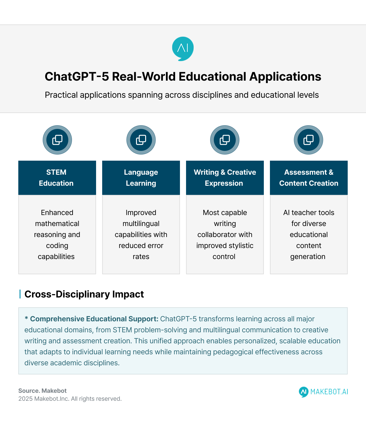 The practical applications of ChatGPT 5 in education span across disciplines and educational levels: