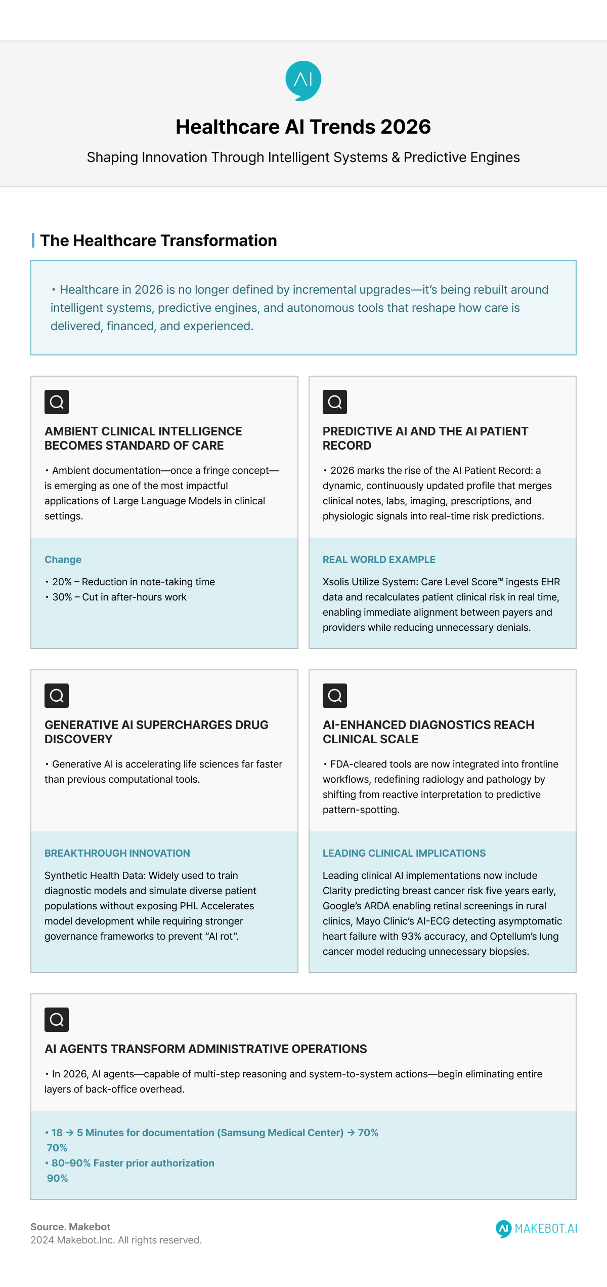 2026 marks the rise of the AI Patient Record: a dynamic, continuously updated profile that merges clinical notes, labs, imaging, prescriptions, and physiologic signals into real-time risk predictions.