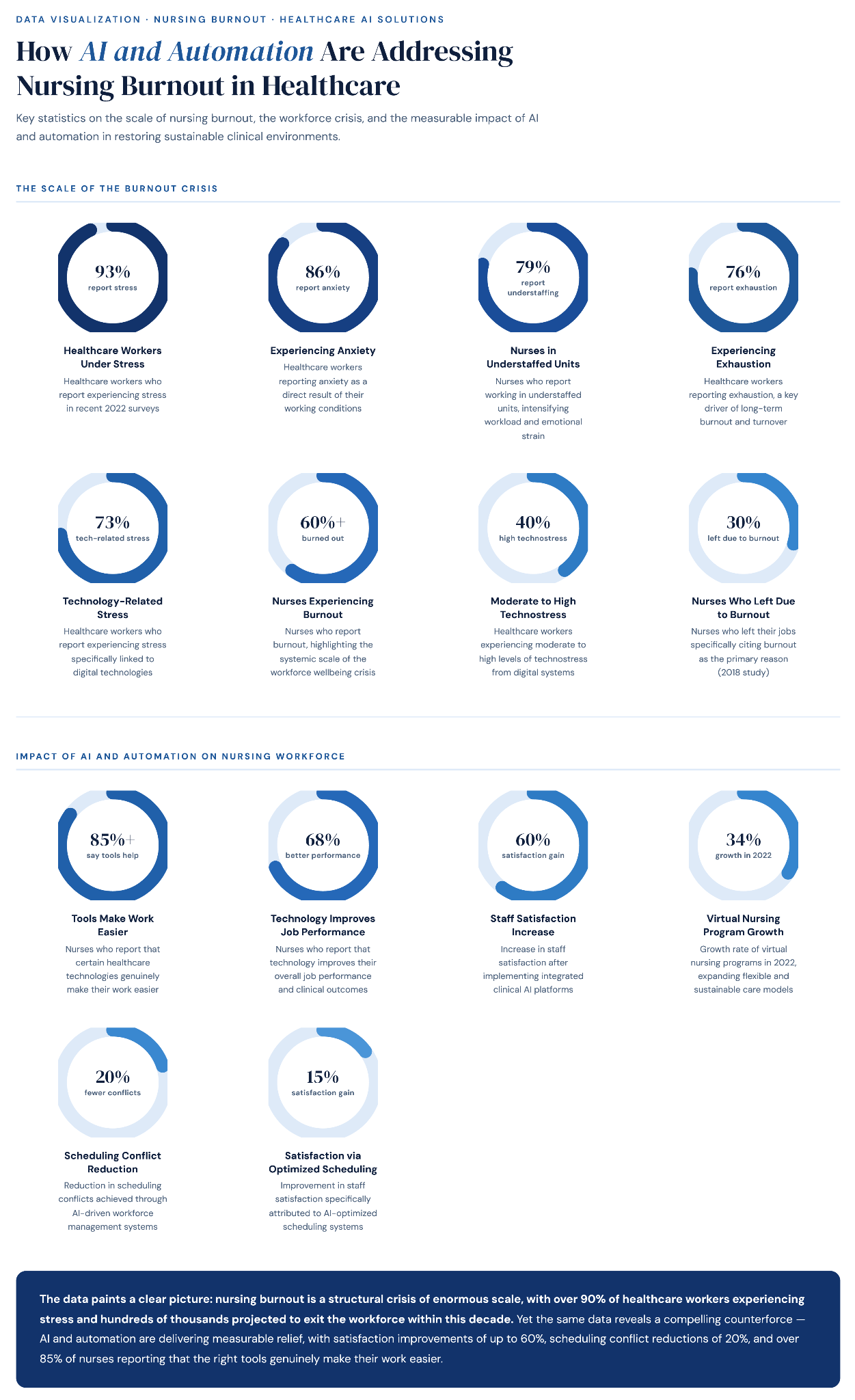 Primary Keywords : Generative AI , AI in healthcare , nursing burnout solutions , automation in healthcare , healthcare workforce burnout , AI for nurses , digital health transformation , clinical workflow automation , healthcare AI solutions , nurse workload reduction technology healthcare staff retention strategies