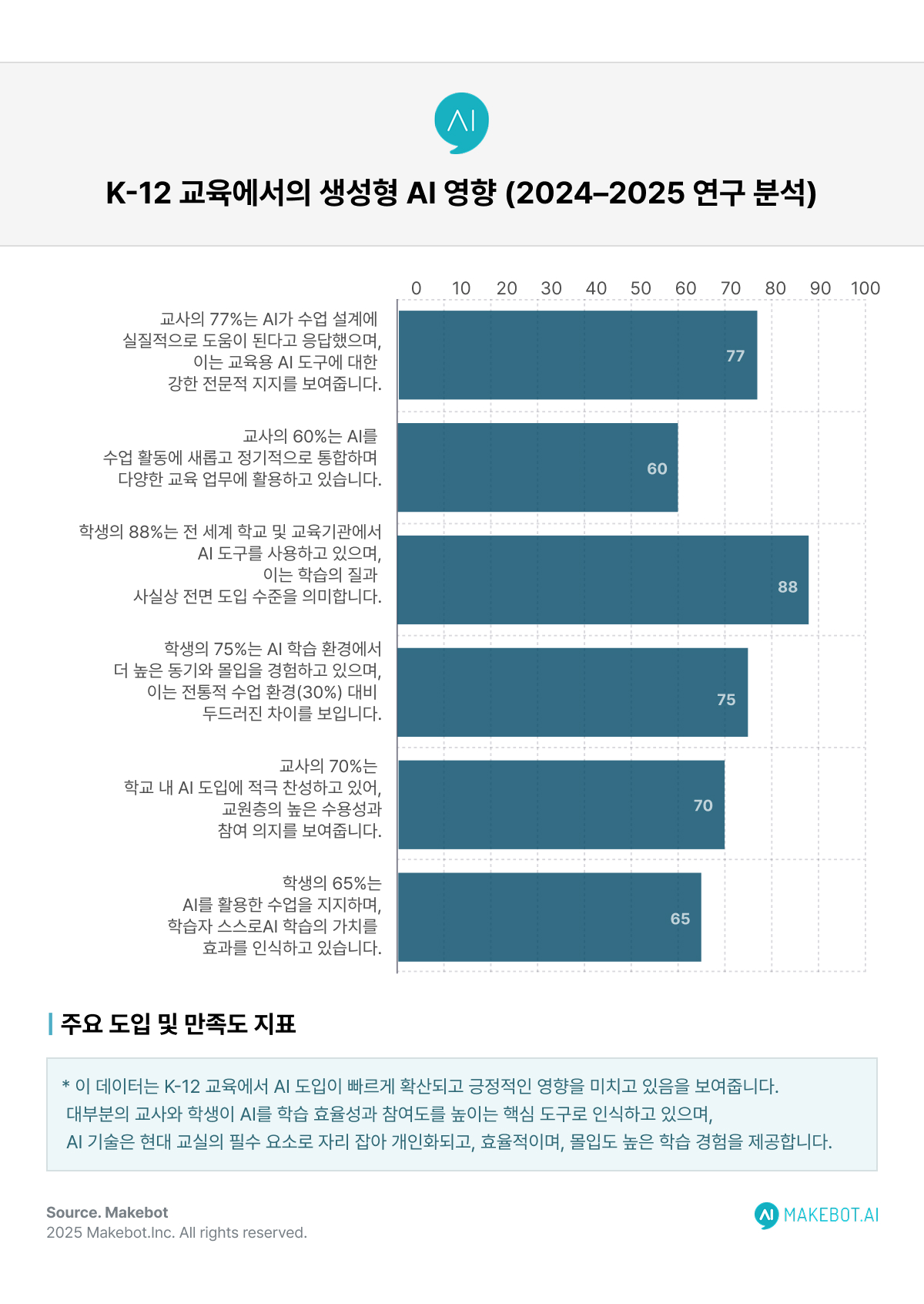 앞으로도 메이크봇은 교육기관과 함께 AI 기술로 교육자와 학생, 학부모가 함께 성장하는 창의적 학습 생태계를 만들어갈 것입니다.