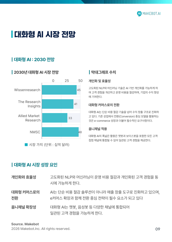 계획·추론·메모리 기능을 갖춘 Agentic LLM은 복잡한 비즈니스 프로세스를 자율적으로 수행하는 운영 엔진으로 발전합니다.Conversational AI는 비용 절감 수단이 아닌 전략 자산